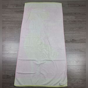 Pink and green beach towel with a blonde hula girl design