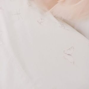 Monique Lhuillier Ethereal Butterfly Sateen Sheet Set & Pillowcase. Set includes flat sheet, a fitted sheet and a single pillowcase.