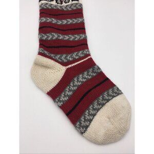Pottery Barn Kids Natural Fair Isle Train Wool Christmas Holiday Xmas Stocking with a monogramming error. 55% wool and 45% polyester shell. Lined. Measures approximately 27” long. Store tag still attached.
