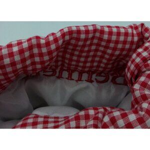 Pottery Barn Kids Quilted Santa and Sleigh Christmas Holiday Stocking Monogrammed “Bennett." Grey. Measures approximately 20” x 11.” SKU 3823908. Condition is new with defects. Note: monogramming error with thread color on the letter "t". Also the red decorative stitching on the back cuff of the stocking doesn't look perfect. See last 2 pictures. Store tag attached.