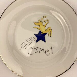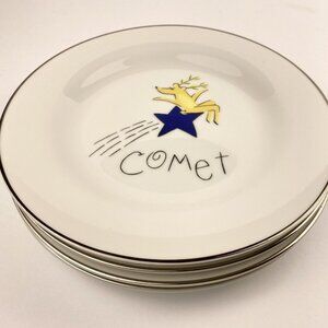 Pottery Barn Reindeer 8.5 in side/salad/dessert plates set of 4, Comet, Blitzen