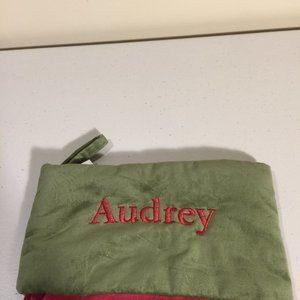 Pottery Barn Holiday Christmas Stocking personalized "Audrey". Measures approximately 19" long. New with tags. From a non-smoking and pet free home.