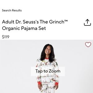 Pottery Barn kids. Adult Dr. Seuss's The Grinch Pajama Set. Unisex Size M. 155-170 lbs New with tags. Tag in USD $79 plus tax. CDN online retail price $119 please note the size chart included. These are a bigger medium more like a women's Large because they are unisex adult. **for the best price and to trigger offers on this item consider bundling with other items** Even the grumpiest of Grinches can get into the Christmas spirit with this very merry pajama set. The set includes a so-soft pure cotton knit pull-over top and elastic waistband bottoms so the whole family can match on Christmas day for cozy, picture-perfect moments. DETAILS THAT MATTER Made of 100% cotton. A fine cotton knit gives the fabric a soft finish while providing durability and ultra breathability. Ribbed at neck, wrists and ankles. Elastic waistband. OEKO-TEX® STANDARD 100: tested for 1000+ harmful substances to keep you and your family safe. 21.HUS.86232 HOHENSTEIN HTTI. KEY PRODUCT POINTS Pottery Barn Kids exclusive. Available in X-Small, Small, Medium, Large and X-Large. Machine wash. Imported. SIZE RECOMMENDATIONS XS: Height 5'7"-5'10"; Weight 121-135 lbs S: Height 5'8"-5'11"; Weight 135-155 lbs M: Height 5'9"-6'0"; Weight 155-170 lbs L: Height 5'10"-6'1"; Weight 170-200 lbs XL: Height 6'0"-6'3"; Weight 200-220 lbs THIS SET INCLUDES 1 Pajama Top and 1 pair pajama pants.