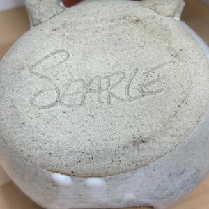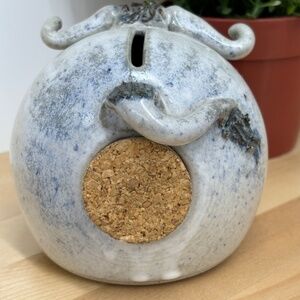 Vintage handmade pottery ceramic stoneware piggy/ longhorn cow bank. Cork in great shape.