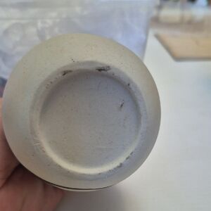 Pottery sake pot featuring a brown and cream design. Perfect for home decor. Excellent condition.