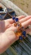 round pottery pendant with an applied matching pottery starfish in a gorgeous, slightly iridescent blueish / brownish / purplish / mustard-ish glaze