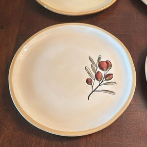 Pottery Barn 8" Dessert Salad Rustic Olive Plates Italian set of 4 Purple Olives