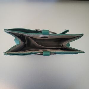 This teal green Pouchee is in very good condition, though there is slight discolourization along the inside top (refer to photo #6).