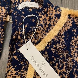 Poupette St. Barth Donna Fringe Trimmed Long Jumpsuit In Navy Dream Size L NWT