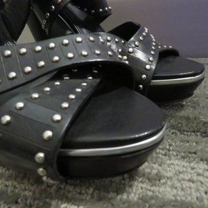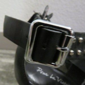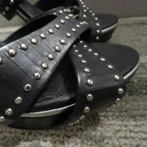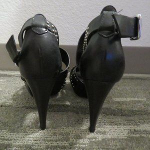 Chic black heels with studded straps. Elegant design. Perfect for any occasion.