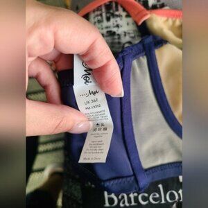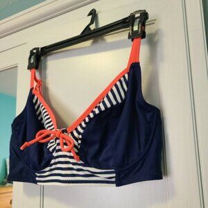 Pour Moi Sea Breeze Navy White and Coral Bikini Top 36E (36DDD) Adjustable straps