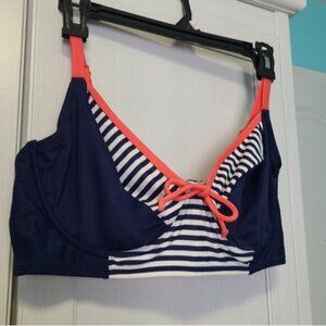 Pour Moi Sea Breeze Navy White and Coral Bikini Top 36E (36DDD) Adjustable Strap
