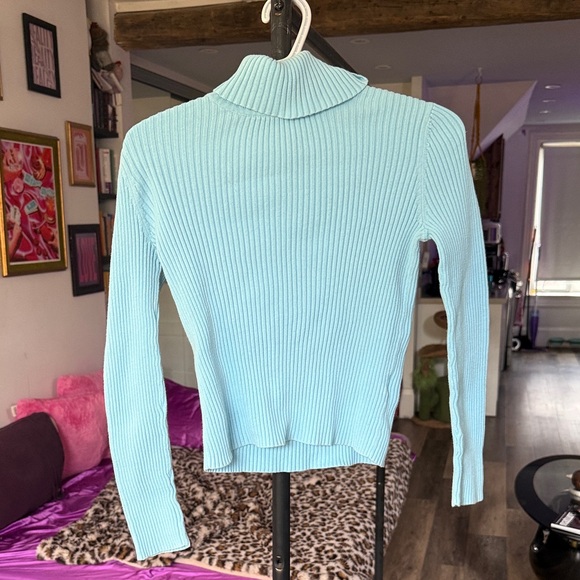 Powder Blue Ribbed Turtleneck Sweater