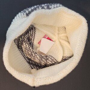 Powder Room Multi Color Beanie Knit Ski Cap Hat Warm Winter Cuff Blank White with Gray Pattern S/M