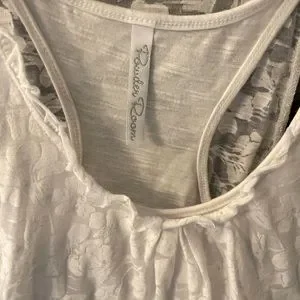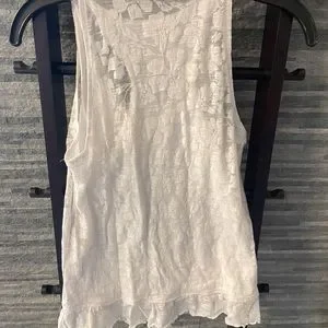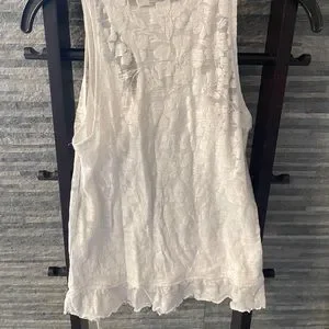 Pretty white sleeveless summer top with cotton/ floral pattern overlay and fully lined.