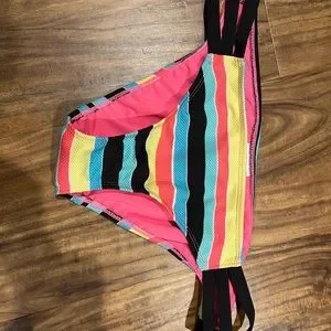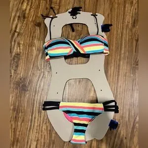 Powder room bikini set. Size medium. Top worn once. Bottoms brand new. Soft padded cups. Removable straps. Can be worn bandeau style or halter. 2 straps included, one black and one multicolour. In great condition. Super flattering on.