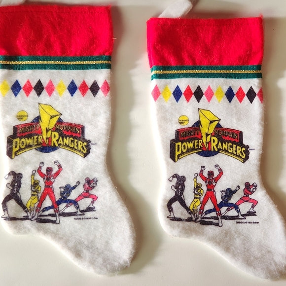 Set of 2 Power Rangers Christmas stockings with vibrant red and white colors. Features iconic Power Rangers design.