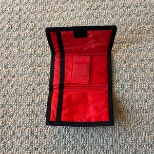 Selling a vintage Power Rangers wallet in excellent condition. Calego international Inc TM/MC 1994 Saban. Features a picture of the black, yellow, red, blue and pink Power Rangers and the mighty Morphin, Power Rangers, graphic. Very colorful. Has a red interior that is in excellent condition. See photos. There are three small dots on the side where the Velcro is on the exterior of the wallet.