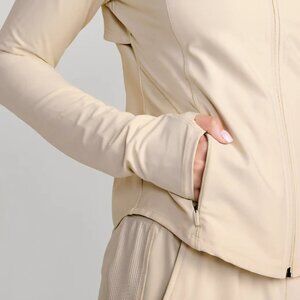 Cute activewear jacket in beige. NWT, Light compression meets a peachy-smooth, sweat-wicking fabric.