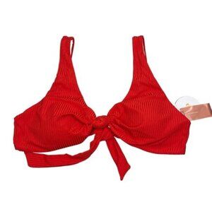 Ravishing in ruby red fabric, this PQ Swim bikini top features subtly textured fabric and a small knot between the cups.