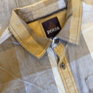 PrAna Brighton Shirt Mens Medium Shirt Sleeve Button Down Yellow Plaid