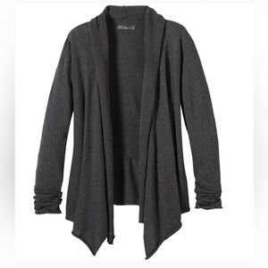 PrAna Georgia Wrap open long sleeve ecru cardigan rear peplum assymetrical hem