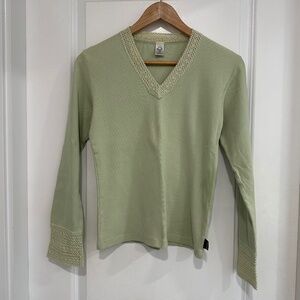 PrAna | Organic Cotton Long Sleeve Ribbed Shirt Light Green Women’s Medium