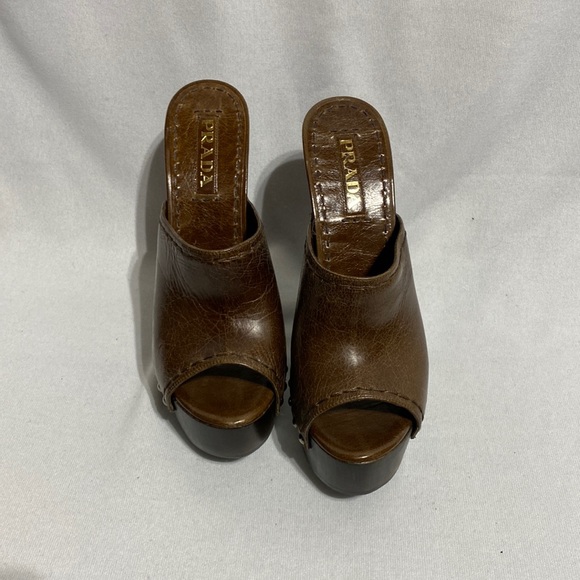 These amazing platform brown distressed clog is stunning on . Have been worn a few times as u can see I’m the pics show little to no signs of wear . With a beautiful open toe and studs on the side adds a little extra to any outfit .