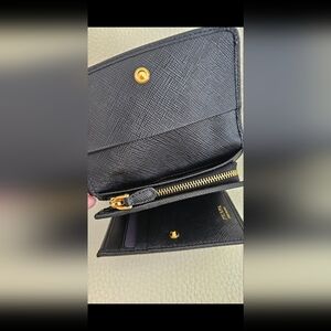 Prada Authentic Saffiano Leather Black Wallet Zip Coin Compartment small