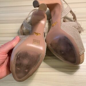 Prada Biege Knit Platform Sandals with buckle closure and cork platform