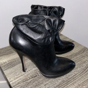 Prada Black Leather Bootie Ruffle Platform Heel size 40/10
