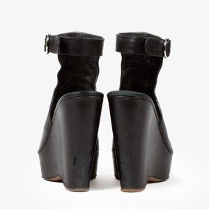 Condition: Good; some creasing, scuffs on the wedge, wear on the insole and outsole; comes in a dust bag