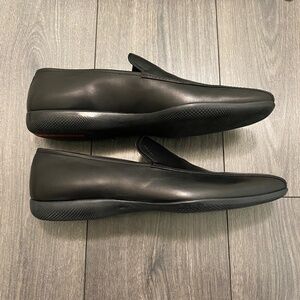 Prada Black Leather Rubber Sole Slip On Loafers Size 11