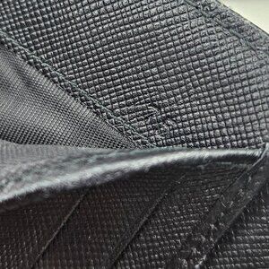 A sleek and elegant accessory crafted in Italy and made from nylon and textured Saffiano cross-grain leather in a classic black shade with stamped75.