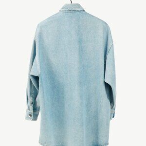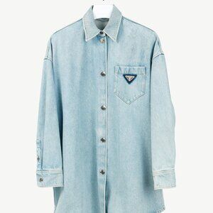 Prada Bleu Distressed Oversized Organic Denim Shirt