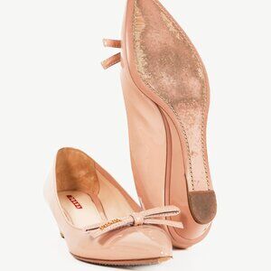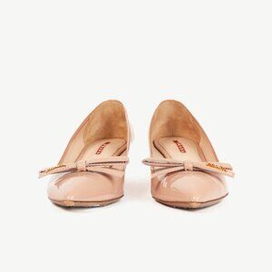 Prada Blush Vernice Bow Pointed-Toe Wedges