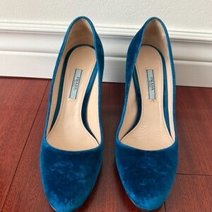 Prada Calzature Donna Velvet Almond Toe Pumps in Cobalto Size 37