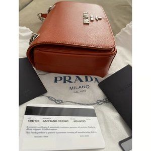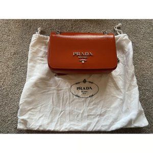 Prada Chain Crossbody Orange Saffiano Leather Shoulder Bag