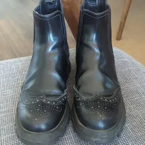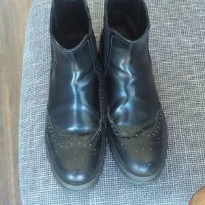 These are a size 40, I am an 8.5-9 and they fit me well. There are some wear on these boots as you can see from the photos. I would describe them as good used condition. They are a very flattering Chelsea Boot and I have worn them in all conditions.