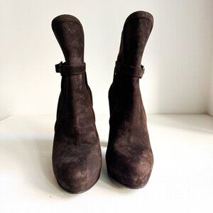 Prada Chocolate Brown Suede Classic Stacked Heel Booties 39.5