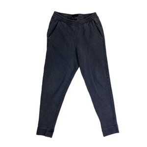 Dark gray cotton jogger pants with elastic waistband and inner drawstring. Narrow tapers leg with cuff at ankle. Back pocket with Prada label. No size on inner tag but measurements shown in photos. Probably a mens small? stretch to a max 32" waist and 26" inseam - please compare measurements to apair of your own joggers to determine if they will work for you