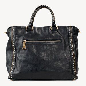 Prada Craquele Nero Glace Calf Leather Studded Shopper Tote