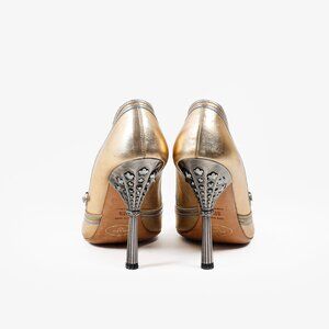 Prada Gold & Silver Mary Jane Embellished Heel Open-Toe Pumps