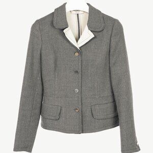 Prada Grey Wool Raw-Edge Tailored Jacket