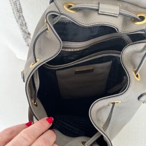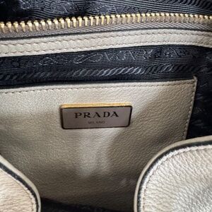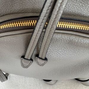 Grey taupe leather Vitello Daino. Excellent condition. Bought in Hawaii on a trip and literally used once. Neutral color that goes with Everything.