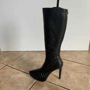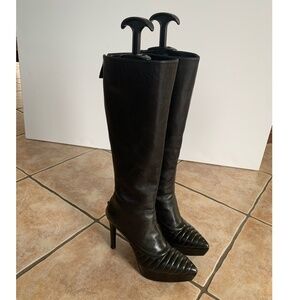 Authentic heeled platform boots with pointy toe in overall great condition with minimal signs of wear on the outsole, heels, anti slide sole protector marks and slight creasing on the leather as shown in the photos.