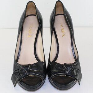 Prada Leather Peep Toe Bow Pumps Womens (EU 36/US 6)