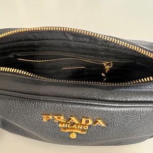 Authentic classic black leather crossbody bag with gold-tone hardware. Very good condition, lightly used. Includes authenticity card and a copy of the original receipt; a timeless piece.