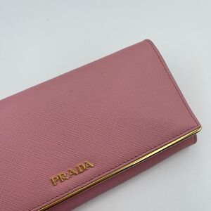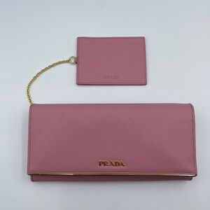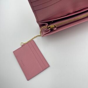 Prada Long leather Wallet in Peonia Saffiano Metal Pink Metallic w/ card holder