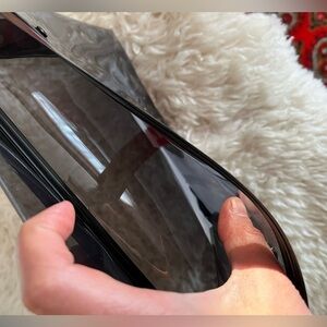 Brand new condition, never used! Slightly dusty due to storage. Size is 21x18.5x5cm. Color black. No tags as this was given to me as part of gift. Has two snap buttons in the front and a original packing paper in the pouch.
